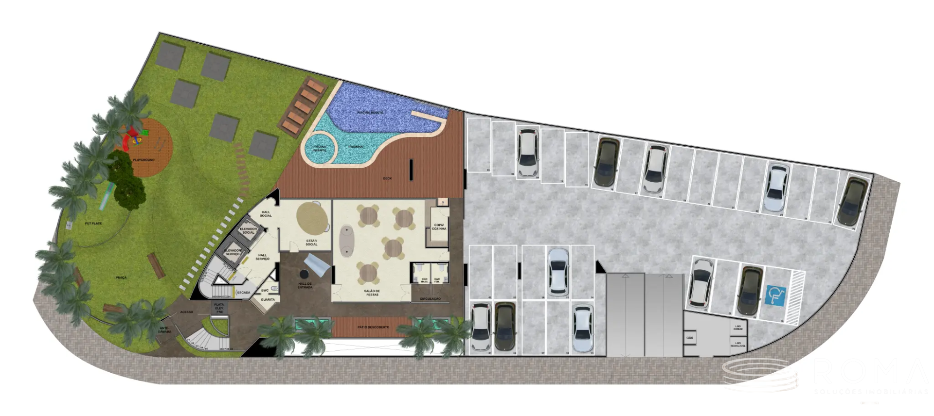 Aqui, cada detalhe contribui para uma experiência de moradia mais leve: seja no tempo desacelerado à beira da piscina, nos treinos na academia ou nas ocasiões especiais no salão de festas.