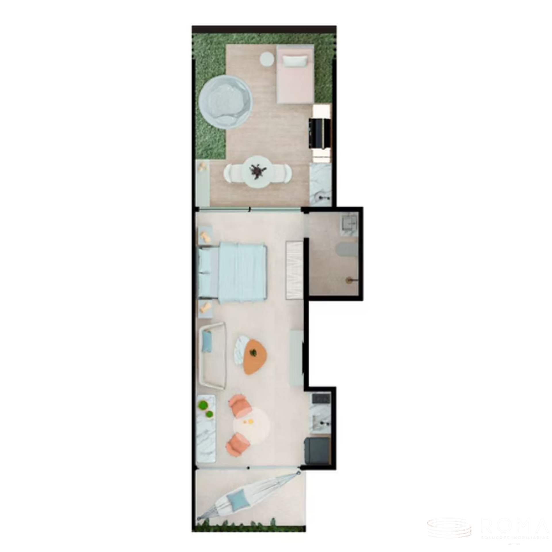 Com 52 m² de área privativa, a unidade foi projetada para entregar conforto e sofisticação na medida certa, com um layout inteligente e totalmente integrado aos espaços externos.